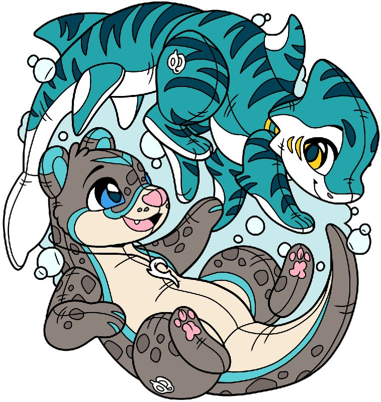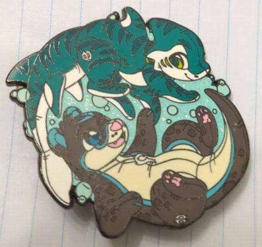 This is a reorder of the AquatiFur 2021 convention pin made by the lovely Fursona Pins. It is two inches and has glitter.